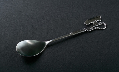 『機動戦士高達 鐵血孤兒』的主角,三日月・奧古斯駕駛的「獵魔高達」,快速在臉型馬克杯系列中登場,且繼「電熱叉」之後,由不鏽鋼加工的最高峰「燕」的巧匠所經手的「電熱匙」登場。