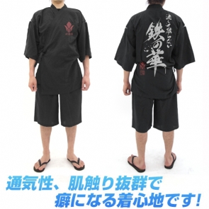 「鐵華團甚平」是以『鐵血孤兒』中登場的「鐵華團」為設計形象的方便穿著甚平和短褲套組。質地非常柔軟,透氣性和觸感都很好,可以在房間休息時、稍微外出購物時和活動時穿著。