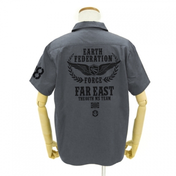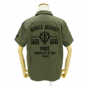 「馬沙披風的刺繡風印刷連帽外套」,是以『機動戰士高達』中馬沙的披風為設計形象的輕薄衣物。披風圖案的部分藉由發砲印刷,表現出立體的刺繍風格。