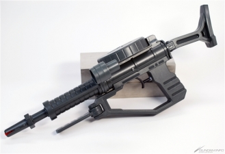 ▲瞄準鏡和前握把是可動式。兩種類型的容量相同。