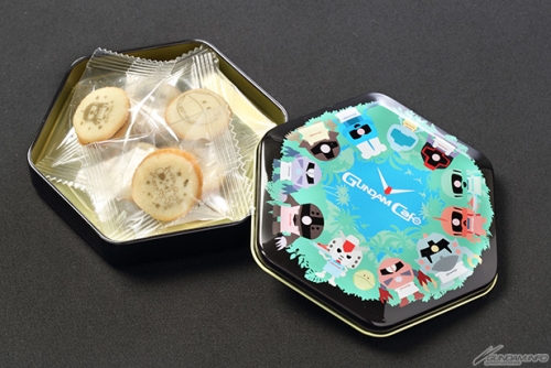 有印上高達店長及其他「高達咖啡君」的夾心餅乾,和加入賈布羅咖啡所製成的咖啡糖,皆為鐵盒包裝,吃完後盒子還可拿來使用喔。