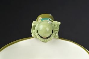 從有耳杯邊緣往裡面偷瞄的可愛渣古成了有耳杯的萌點,再加上自護徽章及MS型號的設計。以軍綠色和白色的雙重配色,成了各世代都適用的一件精品。