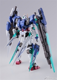 特設網頁裡,介紹了關於這架裝備了「GN劍II放射器」機體的機體解說及新標誌,還可以享受3種型態的換裝樣式等內容。另外,包裝盒使用的插圖更是由海老川兼武特別繪製。