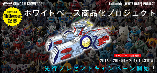 還有,隨著特別網頁的更新,新活動也同時開跑。只要收集指定商品包裝上附贈的點數,集滿3000點即可參加抽獎。活動將抽出150人贈送「FW GUNDAM CONVERGE WHITE BASE劇場海報配色形象ver.」。商品的彈射器及MS甲板部分使用了透明零件,是可從外側看見搭載CONVERGE模樣的特別規格,請務必利用此機會,來參加抽獎活動吧。
