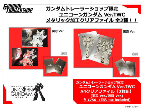 於東京台場「DiverCity Tokyo Plaza」節慶廣場上營業中的「高達貨櫃商店」,將從2月10日(六)起販售限定商品「獨角獸高達 Ver.TWC A4透明資料夾」。售價各為756日圓(含稅)。