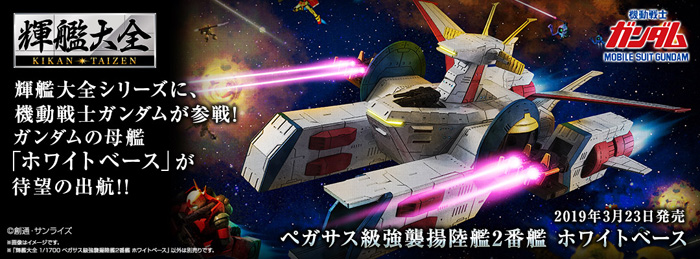 「輝艦大全(KIKAN*TAIZEN)」是以“大人的艦隊收藏”為題材,以精密的造型、充滿厚重感的塗裝,以及光澤表現為製作概念來立體化的塗裝完成品系列。藉由本次推出的「白色基地」,實現高達作品眾盼已久的首次參戰。