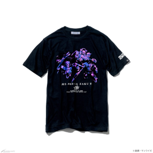 帥氣的金箔印刷「標題LOGO T恤」、強調三重配色的「三重配色圖案T恤」、印有馬沙・亞斯洛布愛機的「馬沙專用渣古II圖案T恤」、以柔軟質感感受復古感的複合材質「馬沙・亞斯洛布圖案T恤」全4種T恤登場。