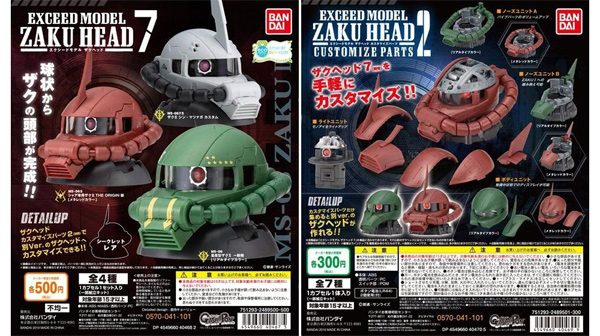從球狀組裝完成精密MS頭部模型的「機動戰士高達 EXCEED MODEL」系列「ZAKU HEAD 7」和「改裝零件2」,將自10月第1週起依序在日本國內玩具賣場・量販店等處的轉蛋自動販賣機發售。