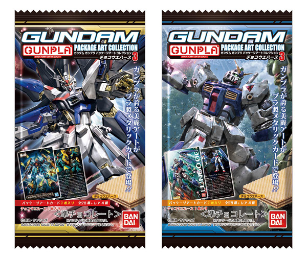 將高達模型的精美外盒插圖製造為塑膠卡片的「GUNDAM GUNPLA PACKAGE ART COLLECTION巧克力威化餅3」,於本日10月21日(一)起在日本國內量販店點心賣場等處發售。售價為120日圓(未稅)。