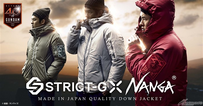 採納高達世界觀的成衣商店「STRICT-G」線上商店,將販售高品質羽絨的羽絨服飾・製造商「NANGA」和『機動戰士高達』的”合作羽絨服飾”共3種。
