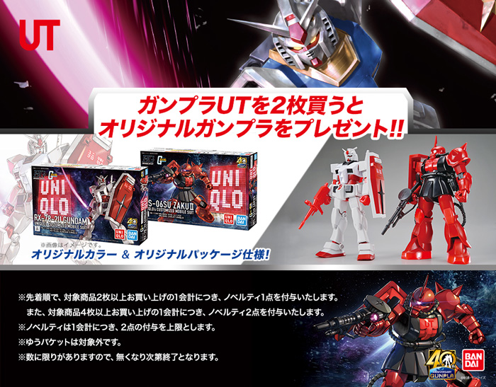 作為高達模型40週年「GUNPLA LINK PROJECT」的一環,和「UNIQLO」合作的UT 收藏「高達模型40週年紀念 UT」於3月下旬起販售。