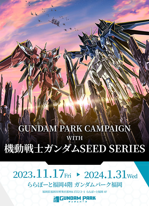 另外,位於GUNDAM SIDE-F「GUNDAM PARK福岡」以及「實物大ν高達立像」也正好評舉辦「GUNDAM PARK 問答集章企劃」中。可以獲得數量限定得『機動戰士高達SEED FREEDOM』獨家貼紙,請千萬別錯過了。