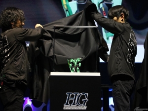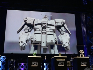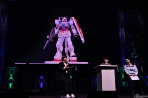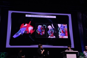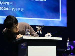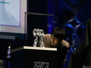 首先發表的是「HG 波連洛沙曼(暫名)」。連本郷也不禁覺得「好冷門!」的新商品,令會場響起了掌聲。接著是「HG 高渣古改良型(A.O.Z RE-BOOT版)」「HG 精神感應高達Mk-II(暫名)」,最後公開「Figure-rise Standard 普露2號」,會場響起了盛大的掌聲,令人感受到眾人對各商品的期待之高。