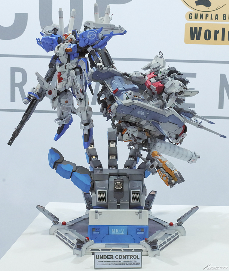評語:在眾多複雜作品匯聚的GBWC中,本作品以簡潔風格脫穎而出,卻同樣引人注目。透過高超的技術,如墨線描繪與刻線雕琢,精心打磨出單體模型的細節。此外,利用塗裝與細小的晶片巧妙重現粒子凝聚成高達模型的意象。乾淨俐落,精細且工整的製作手法獲得高評價。