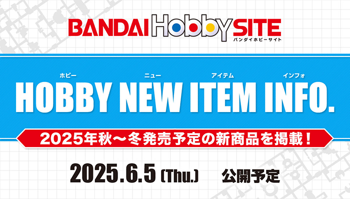 包含 2025 年秋冬新塑膠模型資訊的“HOBBY NEW ITEM INFO.”將於 6 月 5 日星期四在 Bandai Hobby 網站上發佈。