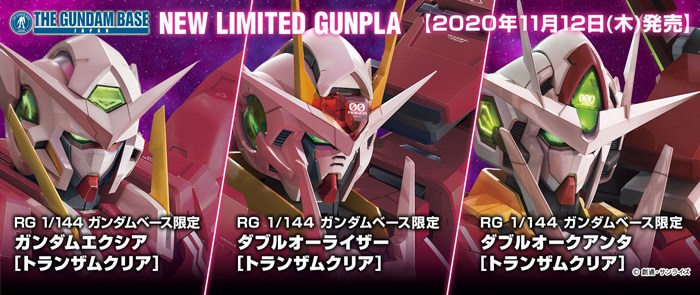 高達模型綜合設施「THE GUNDAM BASE(高達基地)」,在今天11月12日(四)發售高達基地限定高達模型「RG 高達艾斯亞[TRANS-AM透明版]」和「RG 00強化模組[TRANS-AM透明版]」、「RG 量子型00[TRANS-AM透明版]」等3款。