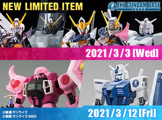 高達模型綜合設施「THE GUNDAM BASE(高達基地)」,決定於3月發售「RG 海盜高達X1[鈦金質感]」和高達基地限定高達模型「MG 渣古戰士(演唱會 Ver.)」等7款商品。