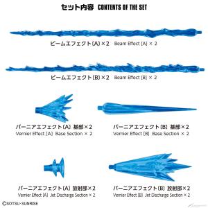 各附屬了2種鐳射特效零件、推進器特效零件,組裝替換即可再現鐳射步槍發射場景,以及MS彈射場景。也可以和「1/100 MS推進器」(另售)等商品組裝。