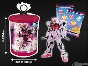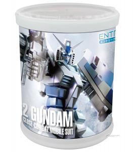 「高達模型圓形BOX」是在附蓋子的巨柱型盒裝內,放入1組HEART原創配色高達模型和2包玉米濃湯零食成套販售的商品。