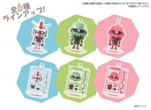 商品陣容(由左上):高達模型君、渣古模型君、馬沙渣古君、高達模型君(組件Ver.)、渣古模型君(組件Ver.)、馬沙渣古君(組件Ver.)