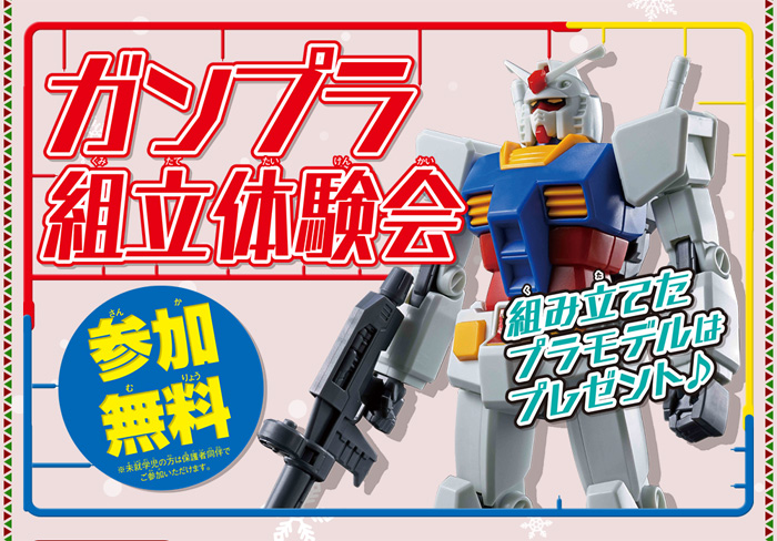 本活動將實施「高達模型組裝體驗會」和「GUNPLA WINTER COMPETITION」、「留言板」。活動期間中,還有準備送給參加者的小禮物,務必來參考看看喔。