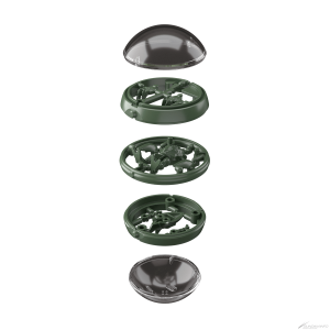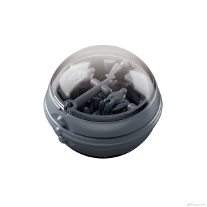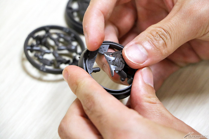 分解膠囊後,上下透明蓋和變成膠囊型(圓)的零件框3個。可以看到零件框上有非常小的零件。
