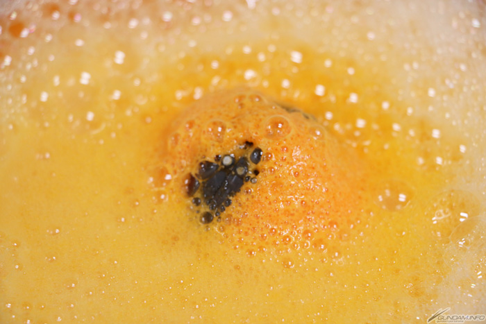 即使是大人也會因為看到這個緩慢溶化的情景而雀躍吧。柑橘香氣立刻充滿房間,日益疲憊的編輯部被這個香氣所療癒……。(非常可惜沒有辦法傳達這股新鮮香氣)