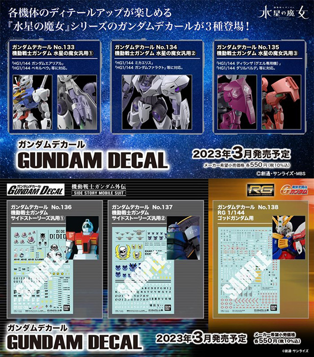 「機動戰士高達 水星的魔女通用」和「RG 神高達用」等6款高達水貼決定於2023年3月發售!