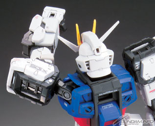 兼具了輕鬆組裝與可動手法的RG系列專用內部框架「進階MS關節」,這次做了新設計,肩部的拉出機構、隨動作滑動的外裝甲等,將可以美麗做出動畫中那魅力的SEED特有姿勢!