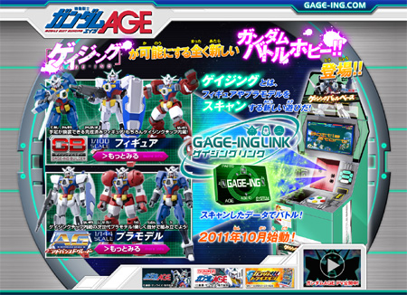 搭載了被稱為『GAGE-ING卡』的共通IC晶片,最新次世代高達模型「AG(Advance Great)」和高達figure「GB(GAGE-ING builder)」將可以在店家設置的免費遊戲機『GAGE-ING戰鬥基地』等和各式各樣的商品進行連動來遊玩!