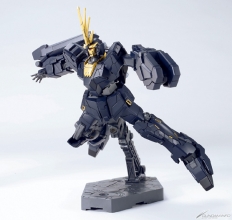 出自『機動戰士高達UC』的獨角獸高達2號機,通稱「報喪女妖」,將以「獨角獸模式」登場!“角”等黄色部分採用富有光澤感的成型色。兩手腕的動畫原創武裝以展開前的狀態重現!另外還附有盾牌、火箭炮、光束軍刀。