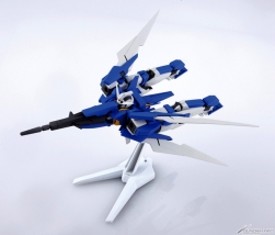 出自『機動戰士高達AGE』,高機動型UE「戰達斯」的高等機體「戰達斯R」登場!胸部的擴散光束砲口與眼部的設計,以透明零件及反光貼紙重現之外,還能變形成飛行型態!另外附有大幅度展開武打姿勢的平手。