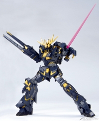 出自『機動戰士高達UC』的獨角獸高達2號機,通稱「報喪女妖」,以「獨角獸模式」登場!兩手腕的動畫原創武裝以展開前的狀態重現!“角”等黄色部分採用富有光澤感的成型色!另外還附有盾牌、火箭炮、光束軍刀。