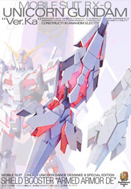 附套件裝在另外販售的「MG 1/100 獨角獸高達 Ver.Ka」盾牌上,就能夠重現漫畫的原創武裝。「Armed Armor DE Ver.Ka」這個套件本身就可以從獨角獸模式變形成毀滅模式,變形後裝甲部分會展開並露出精神感應框架。