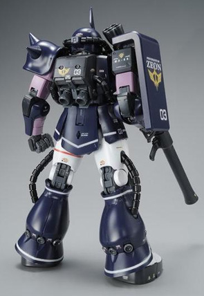 「MG 黑色三連星渣古」與馬沙專用渣古同樣為「S型」,以黑色三連星樣式登場的商品。參考GUNDAM ACE上連載的「MSV-R」畫稿,除了以成形色重現其特徵配色之外,還附特有的新標誌水貼,以及蓋亞、奧爾提加、馬修的同比例人像。