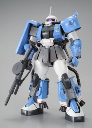 「MG 幽馬・萊特寧専用渣古II」是月刊GUNDAM ACE連載中的作品「機動戰士高達 MSV-R」裡登場的“青色雷光”「幽馬・萊特寧少尉」的愛機。