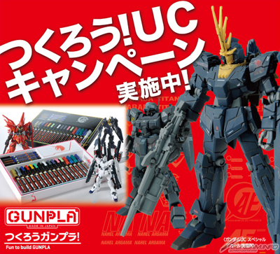 內容有「獨角獸Ver.」和「報喪女妖Ver.」,購買高達模型「RG系列」、「HGUC系列」任一產品,就可以獲得「專用抽獎券」,填妥必要資料並參加抽獎,就有機會抽中合計只有400個名額的好禮。