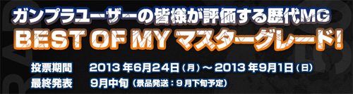為了紀念在8月要發售「MG RX-78-2高達Ver.3.0」而舉辦的「歷代MASTER GRADE人氣投票」,要由玩家們來決定共有170品項的MASTER GRADE商品中前50名。