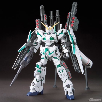 出自『機動戰士高達UC episode 7「彩虹的彼端」』,「全武裝獨角獸高達」在HGUC系列上登場!精神感應框架以透明綠成形!內附3枚盾牌的立架,能夠展現高達模型才能有的展示!