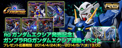 而在活動期間中,緊急任務的過關報酬將會有以RG系列高達模型來繪製的SR「哥達魯艾斯亞」和「命運高達」等機體登場。
