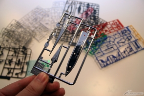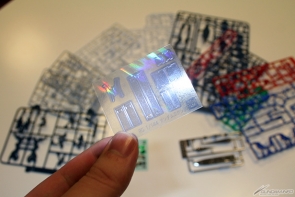 ▲框架的構成就如圖所示。全像PET的「GN CODE」,和經過電鍍加工的「GN劍」和「GN刀」的刃部非常引人注目。