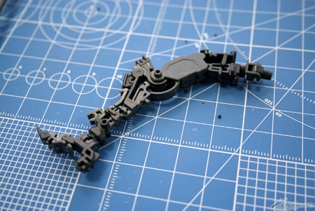 ▲組裝完脚部之後,接著進行身體、腕部、頭部的製作。『高達00』中登場機體最大特徴的「GN爐」,可以當作個別的零件拆下來。
