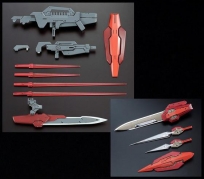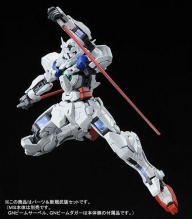 兩項商品都採用全新零件重現與「高達艾斯亞」形狀不同的頭部、肩部、正面裝甲、腕部側面等部位。還內附「GN砲」、「原型GN劍」等新武裝,以及能將原型GN劍裝備在腕部、重現「GN光束步槍」射擊姿勢用的連結零件,和全新寫實貼紙。