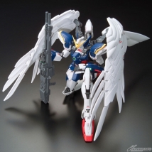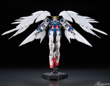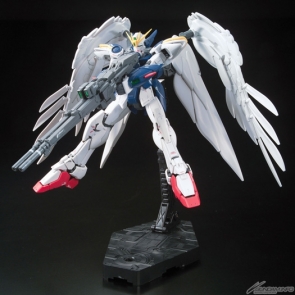 『新機動戦記ガンダムW Endless Waltz』より、主役機「ウイングガンダムゼロ」がシリーズ初のRGとして登場。大気圏突入を可能にする翼の表面が、幾層もの耐熱パネルの積層体として再現されているほか、立体感溢れる彫刻で表現される表面ディテールや、各小翼がフレキシブルに展開する可動構造により、羽ばたく翼の美しいフォルムが追求されている。