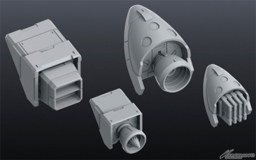 透過替換組裝噴嘴強化機動力!將2種大小尺寸的噴嘴和底部自由組裝,可以改造推進器部分!