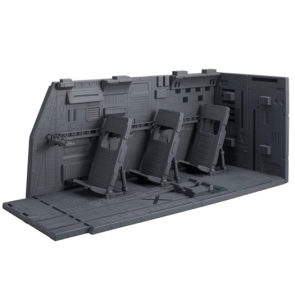 全長500mm的大份量,彈射甲板組裝後可以再現維修MS的場景。此外,也可以變行為射出MS的彈射器狀態(全長約1000mm)等充滿魄力的場景模型。