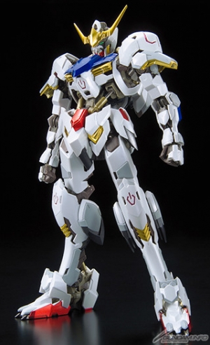 『機動戰士高達 鐵血的孤兒』的主角機「高達巴巴托司」在以高解析度重現超精密設計的高達模型新品牌「HIGH-RESOLUTION MODEL」套件化!完成品骨架的各個部分使用金屬零件,同時兼顧重量感和寫實性!並重現汽缸等等的可動機構、追求機械本身的細節。外裝零件的零件框價高達7片,使用電鍍、金屬質感、珍珠光澤等等各式各樣的表面加工,精密地重現質感。除了滑膛砲、太刀外,還附有張手零件,能夠表現出表情豐富的姿勢!