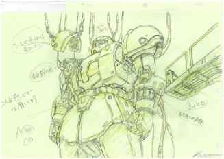 ▲動畫「THE ORIGIN」原畫[左]、動畫「THE ORIGIN」設定資料[右]。