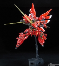 『機動戰士高達UC RE:0096』中,弗爾・伏朗托搭乘的真紅MS「新安州」終於RG化!實機考證的火箭引擎,設計更為精細的背部可變式推進器,且内部機械可開闔,可動機構更加進化!金色的紋章為電鍍加工,基底的紅色是複合注入表現出各自的質感,閃耀出美麗的光澤!全身更反映出カトキハジメ繪製的高密度細節!