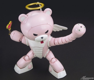 『島上熱戰』中,粉紅色的天使風熊霸立體化!新零件的噴射背包上的翅膀是可動型,還附屬「天使之輪」。模型本身也可以持握愛心造型的魔杖!